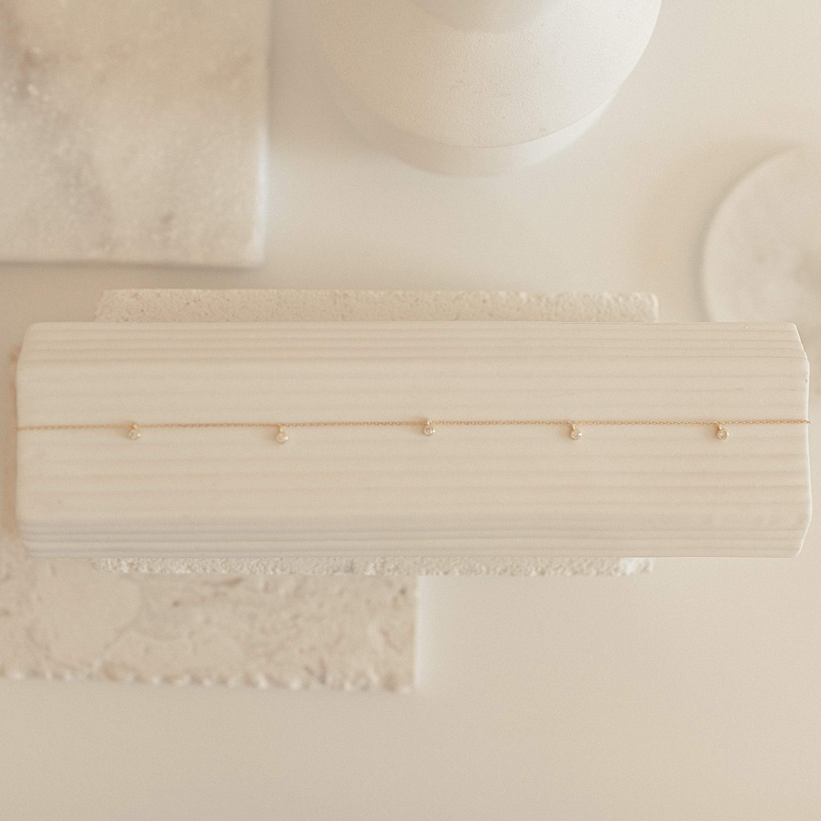 Embrace modern elegance with our Diamond Station Necklace. This design can be dated back to the 1970s when it was first introduced. Today, the Diamond Station Necklace is considered a timeless staple and is the perfect accessory for any occasion.