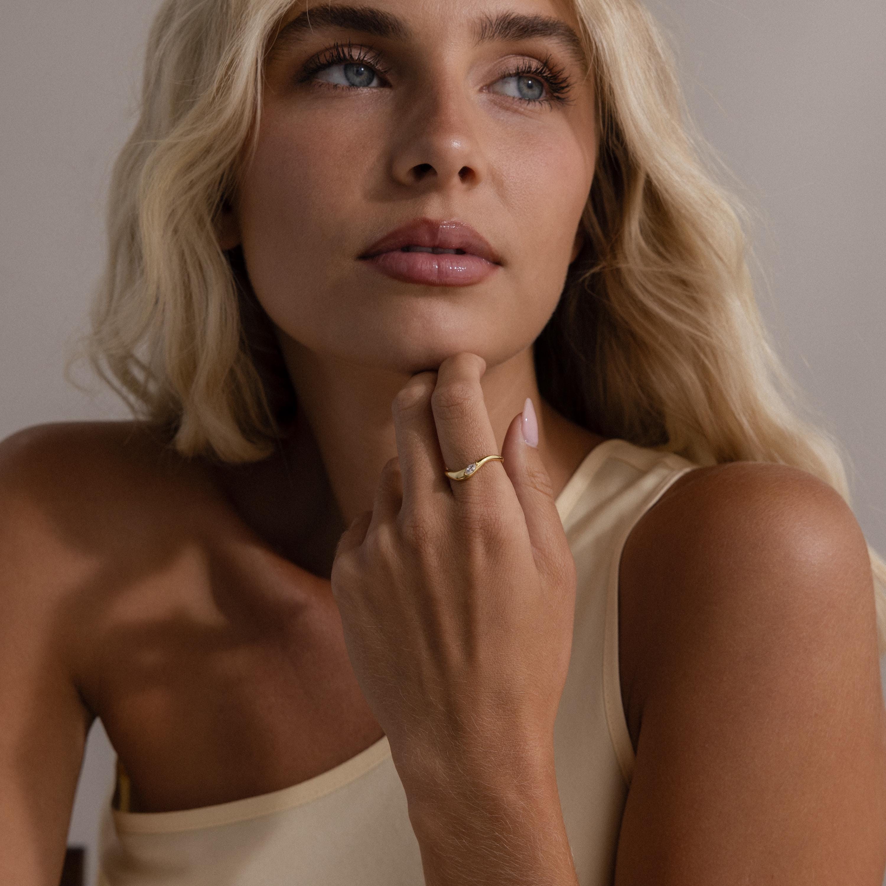 A minimalist ring with mindful elegance, our Zen Diamond Curve Ring features a smooth golden band that flows into a subtle curve, adorned with a single diamond accent that radiates calm sophistication. A piece that balances simplicity and brilliance in perfect harmony ♡